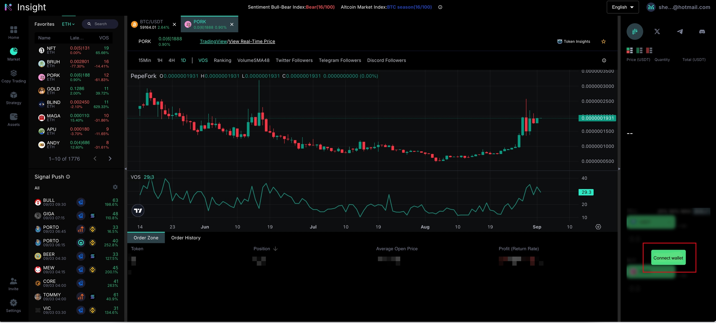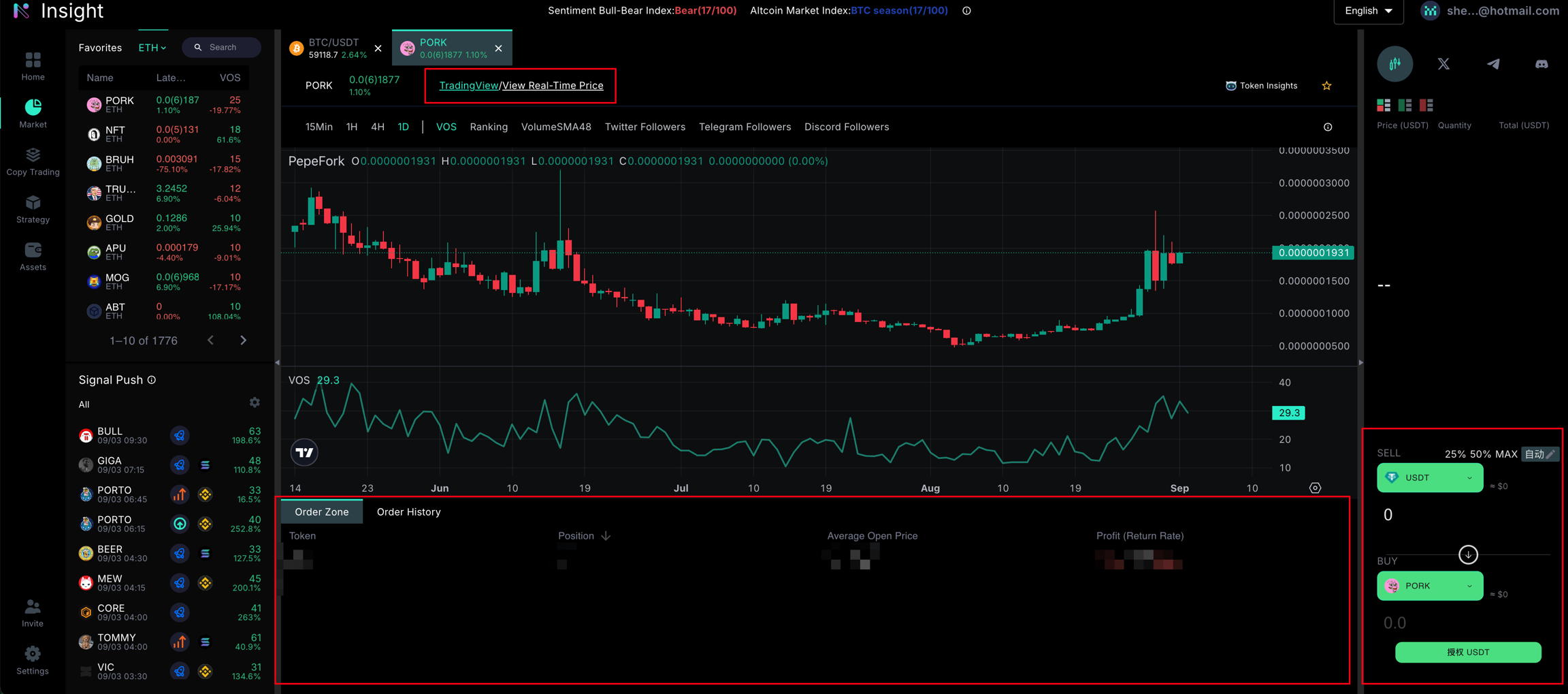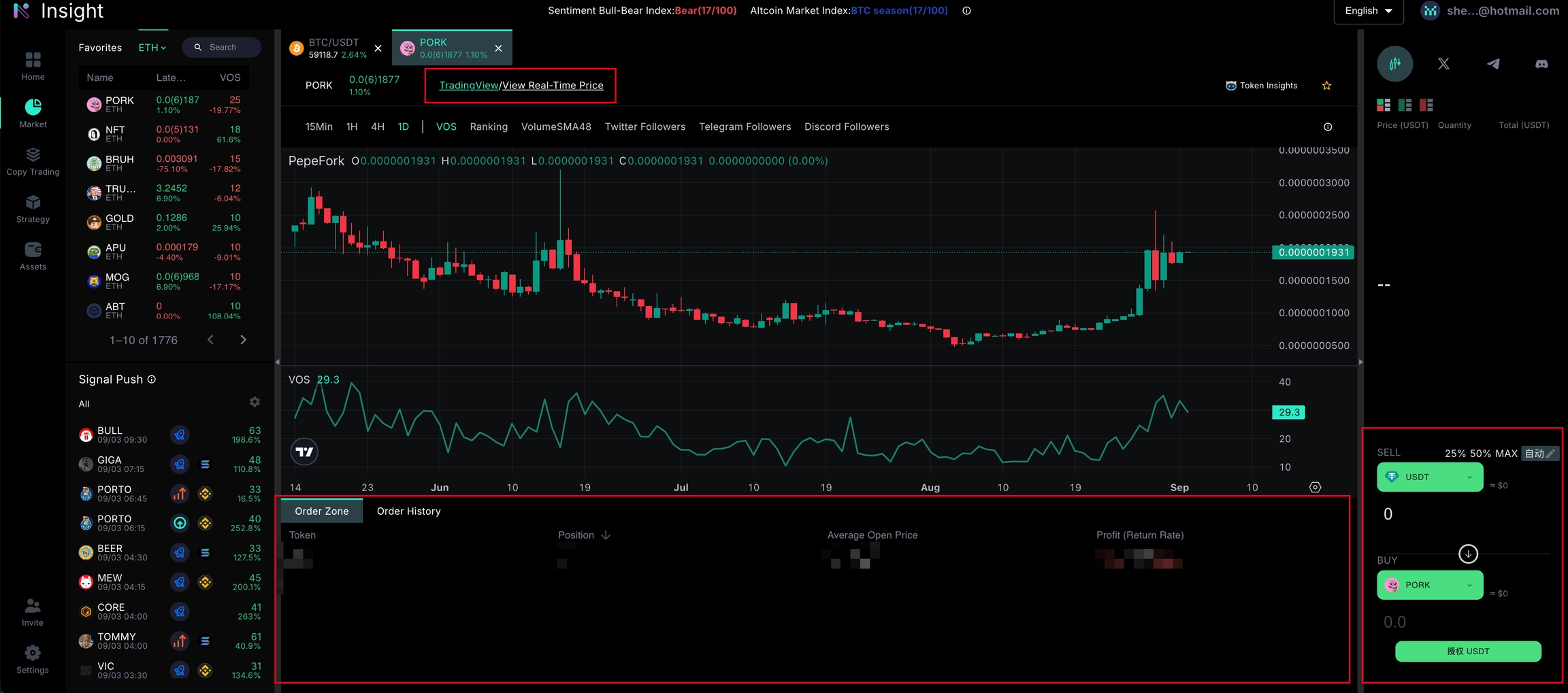 The Insight K-line allows you to compare and view volume trends, updating every 15 minutes.