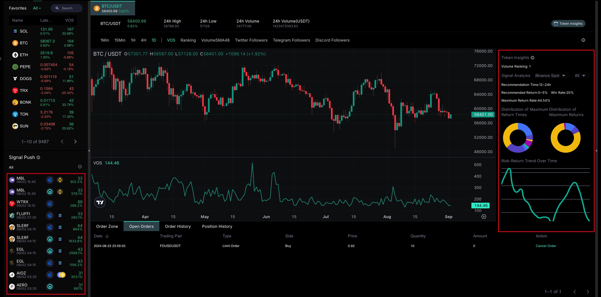 Through the cryptocurrency insight dashboard on the right, users can understand the trading recommendations for each signal in the current market environment, including: