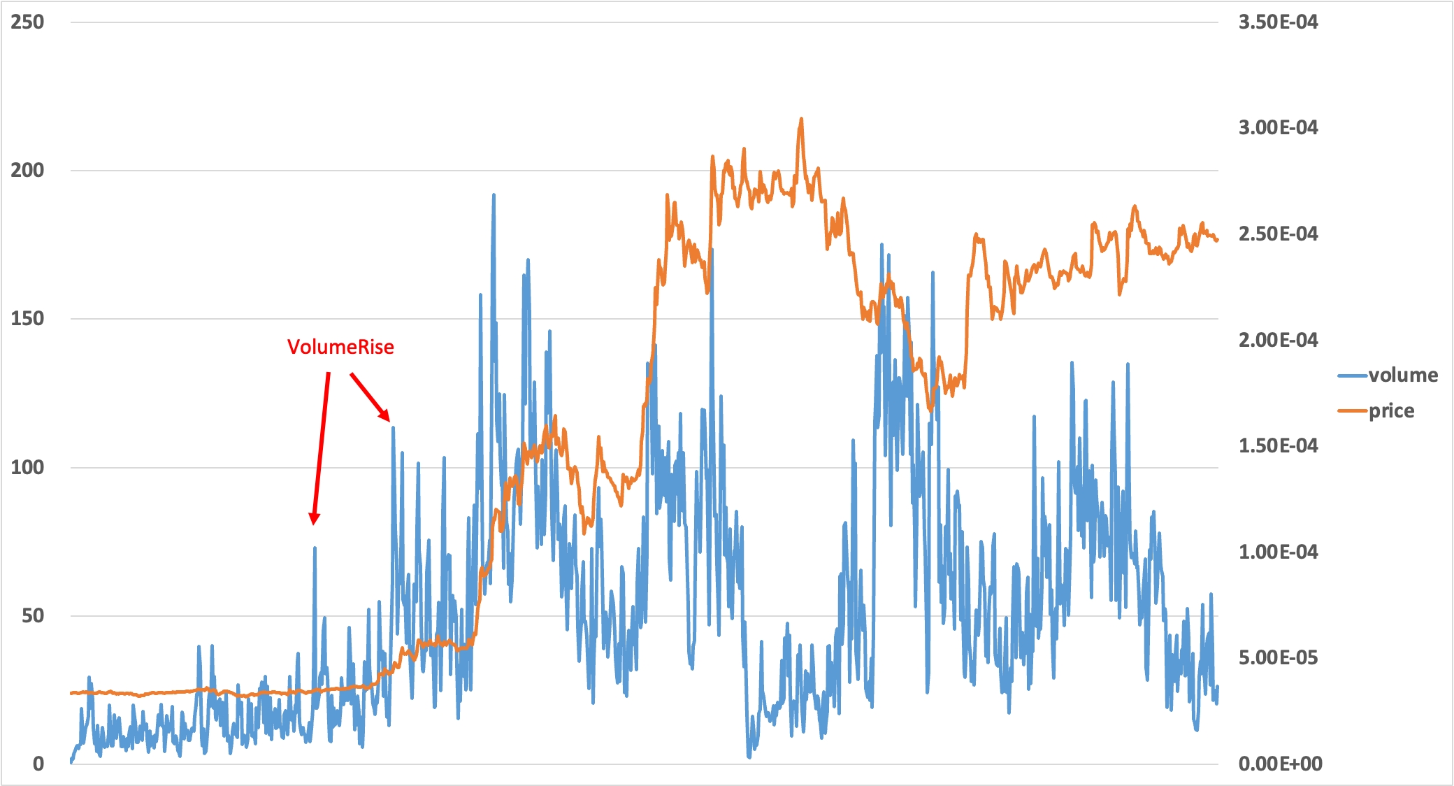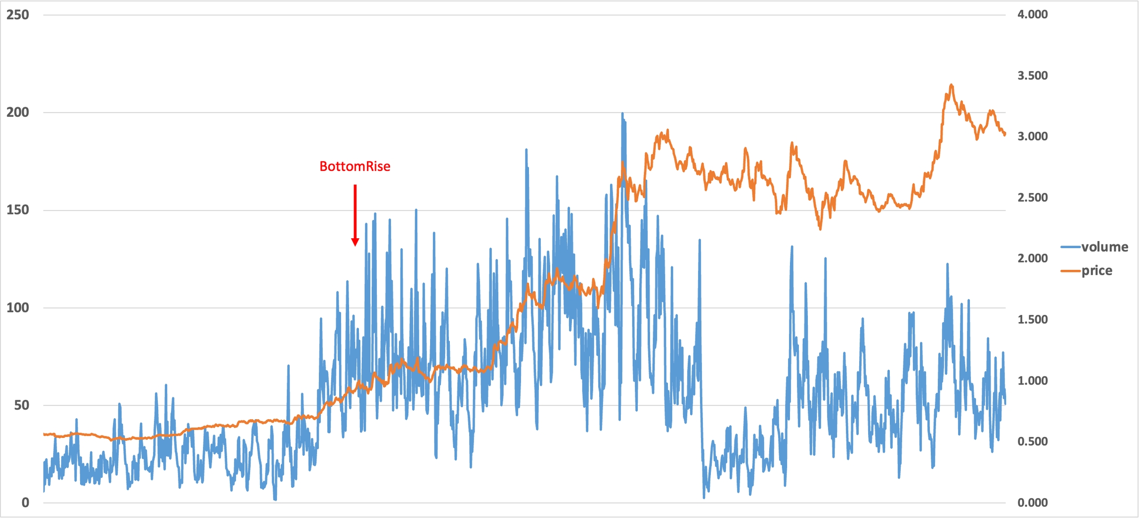 信号描述:声量上升类型,对应时间区间声量突然向上突破远超过去一段时间声量压力位